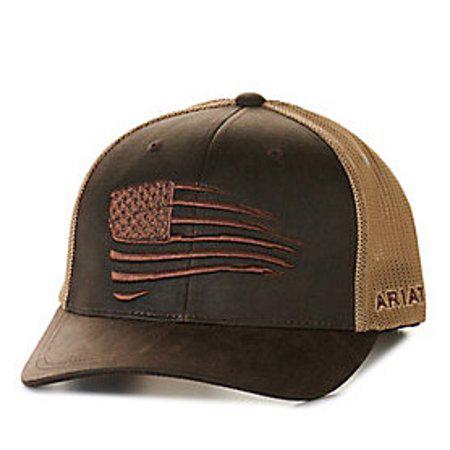 Ariat Men's Embroidered Flag Adjustable Snapback Ball Cap Brown