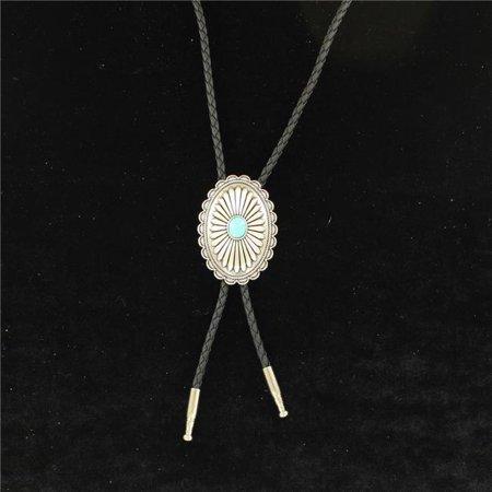 Ariat Oval Flower Concho with Turquoise Slide Silver Bolo Tie