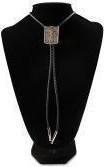 Stylish bolo tie by M&F Western Products. Shield concho with scrolling engraved background. Raised engraved Cross in antique brass and antique copper, with a flower and scrolling design in the center. 36” long, black cord made from manmade material.