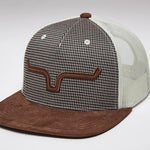 Details:5 Panel Hounds-tooth Check, Faux Suede Bill, Suede Die Cut Patch