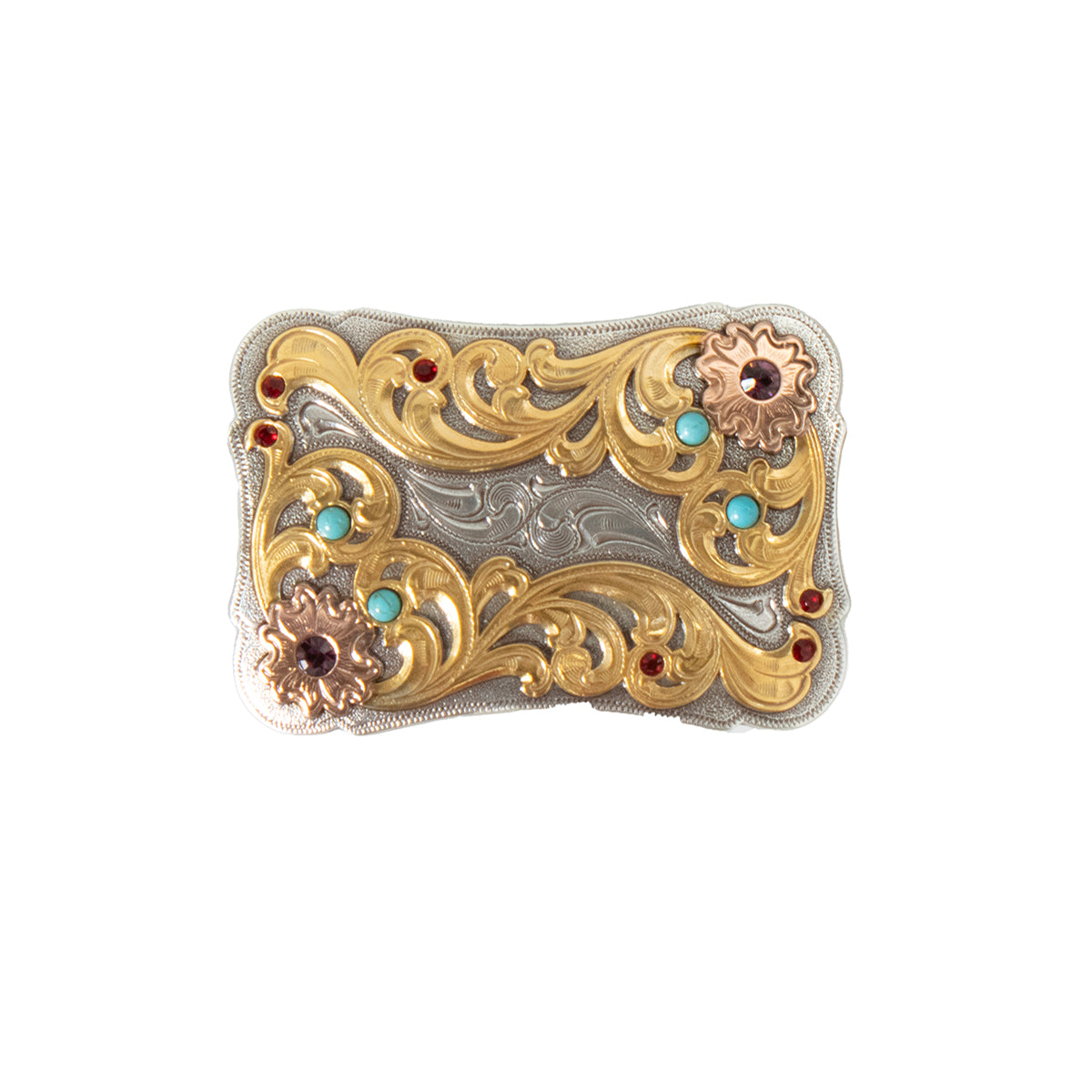 Blazin Roxx Retangle Belt Buckle w/Multicolor Stones