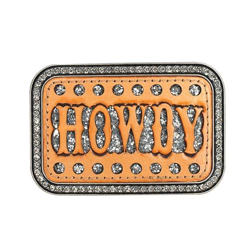 Nocona Retangle Belt Buckle w/Rope Edge Crystal "Howdy"