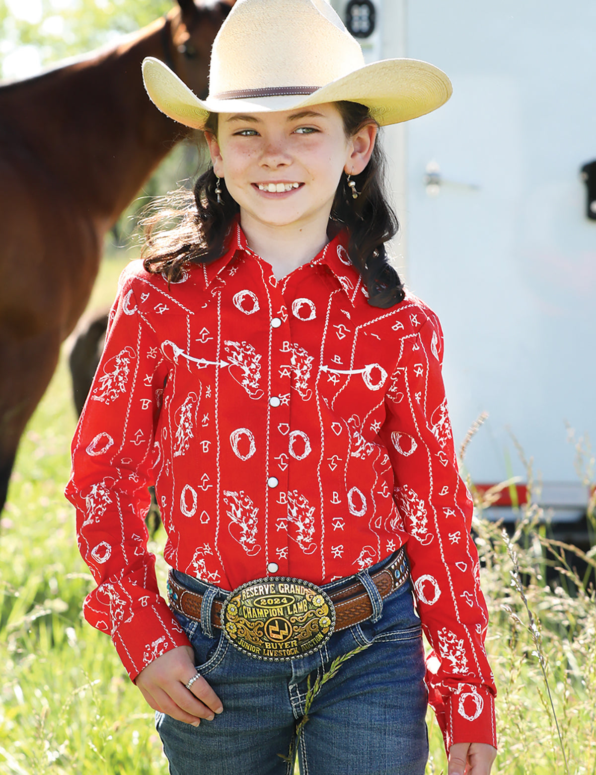 Cinch Kid's Silky Long Sleeve Pearl Snap Shirt Red