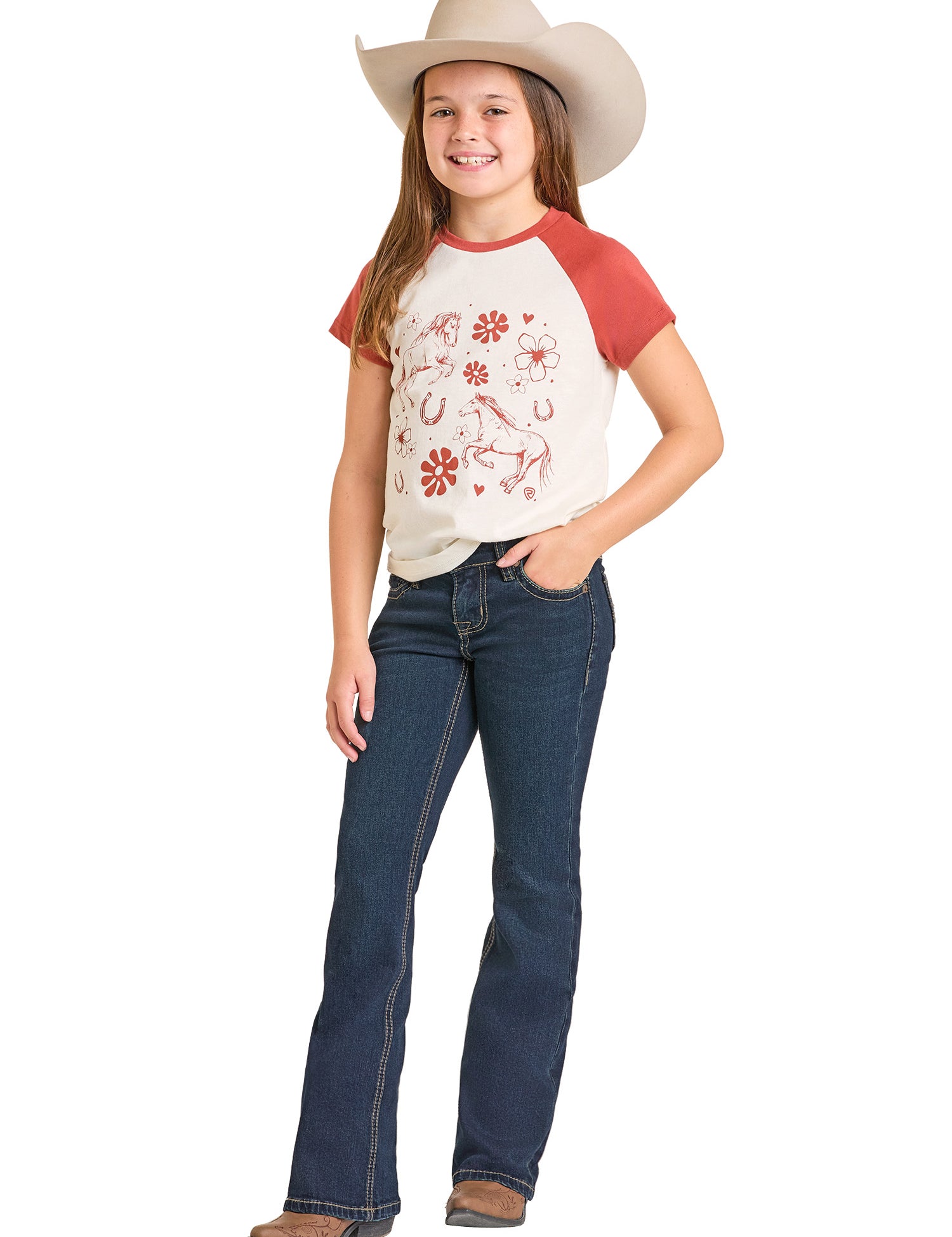 Rock & Roll Girls Boot Stitch Boot Cut Jeans Dark Vintage