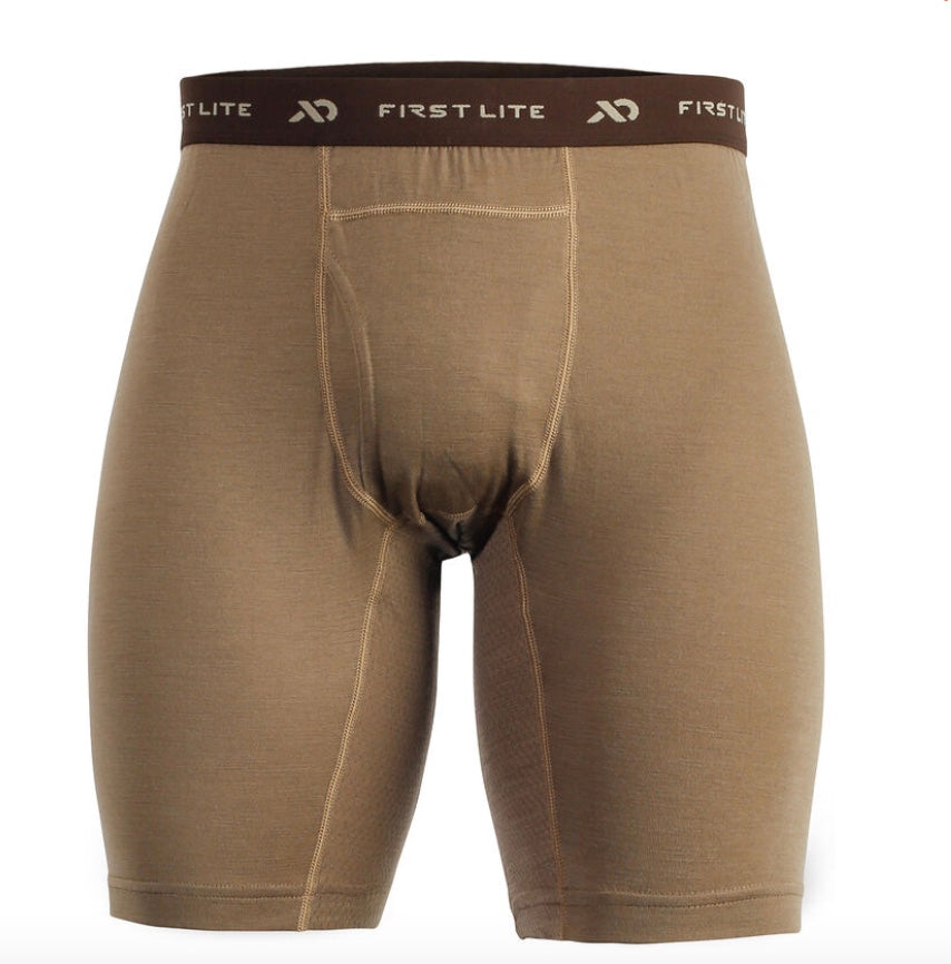 First Lite MBWLBDE Mns Wick Long Boxer Brief Merino Wool Dry Earth