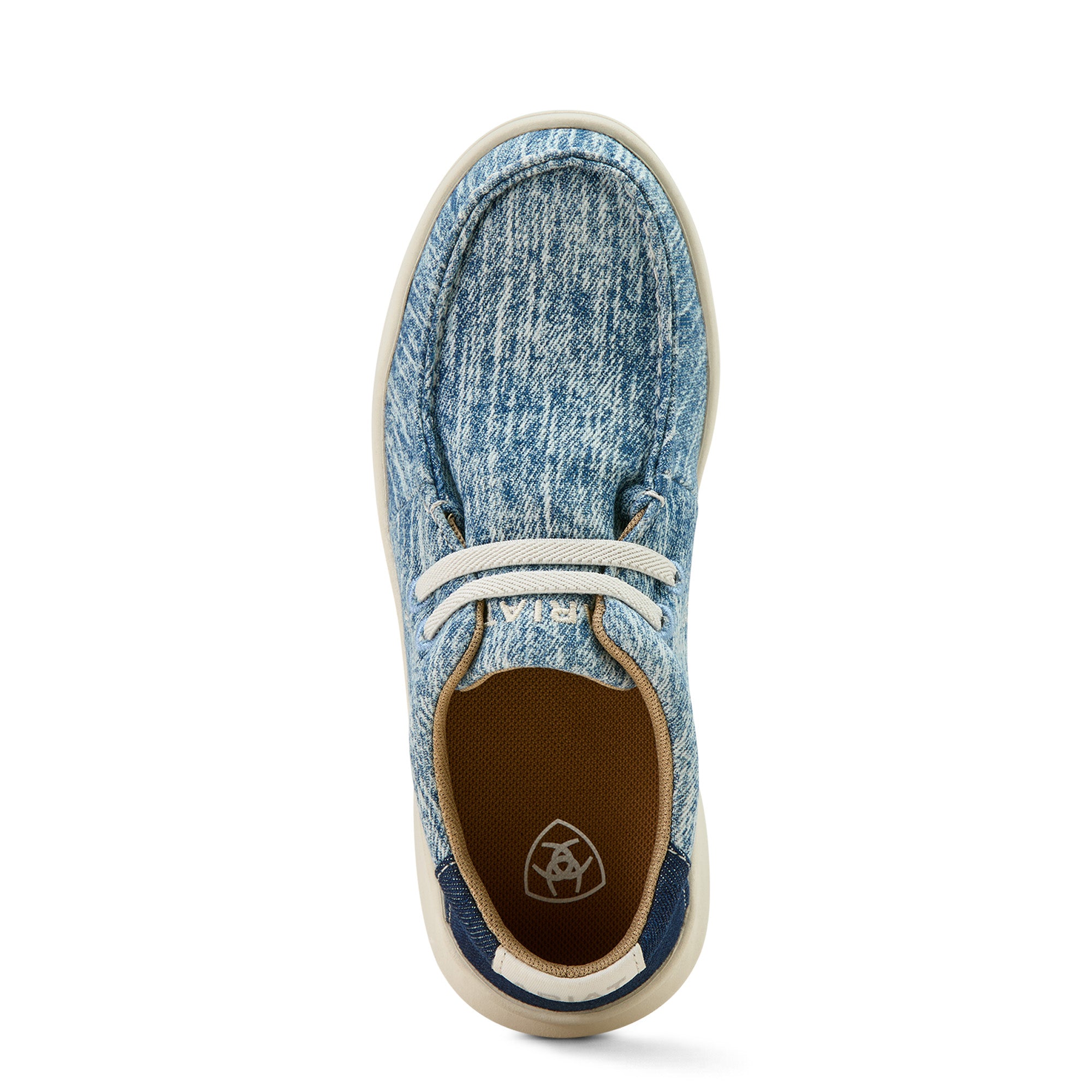 Open cell cushioning insole FLX Foam™ sole has a light springy feel that cushions each step Elastic fixed lace 2.5" height Flat Round moc toe Fabric upper Mesh lining