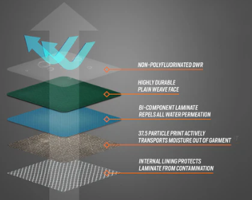 - Uncompromising proprietary Bi-Component Laminate Package that creates the utmost waterproof and windproof yet breathable construction