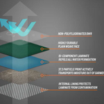 - Eco-Friendly 80/30 DWR package out performs traditional Polyfluorinated DWR’s while creating impressive resistance to face fabric wetting out