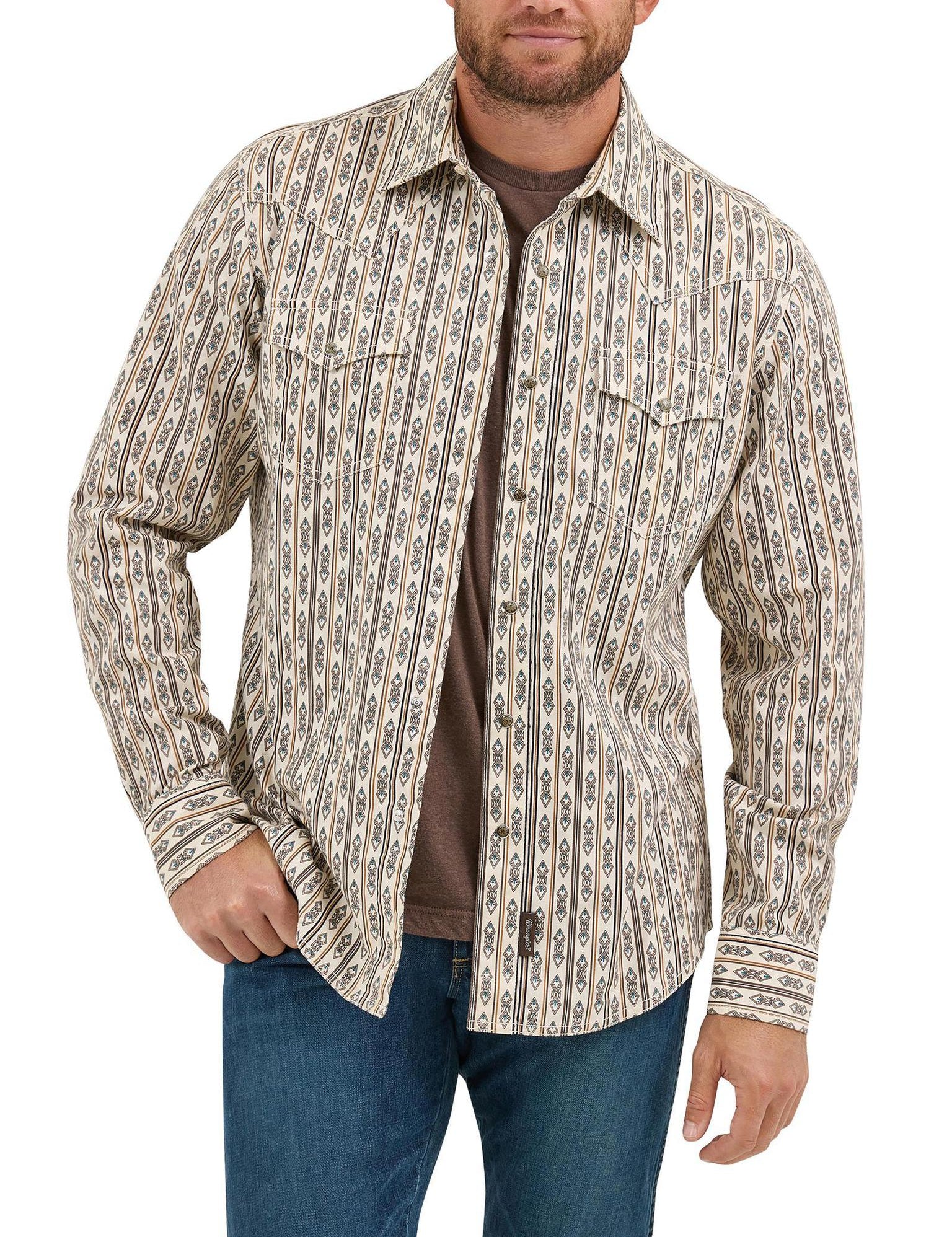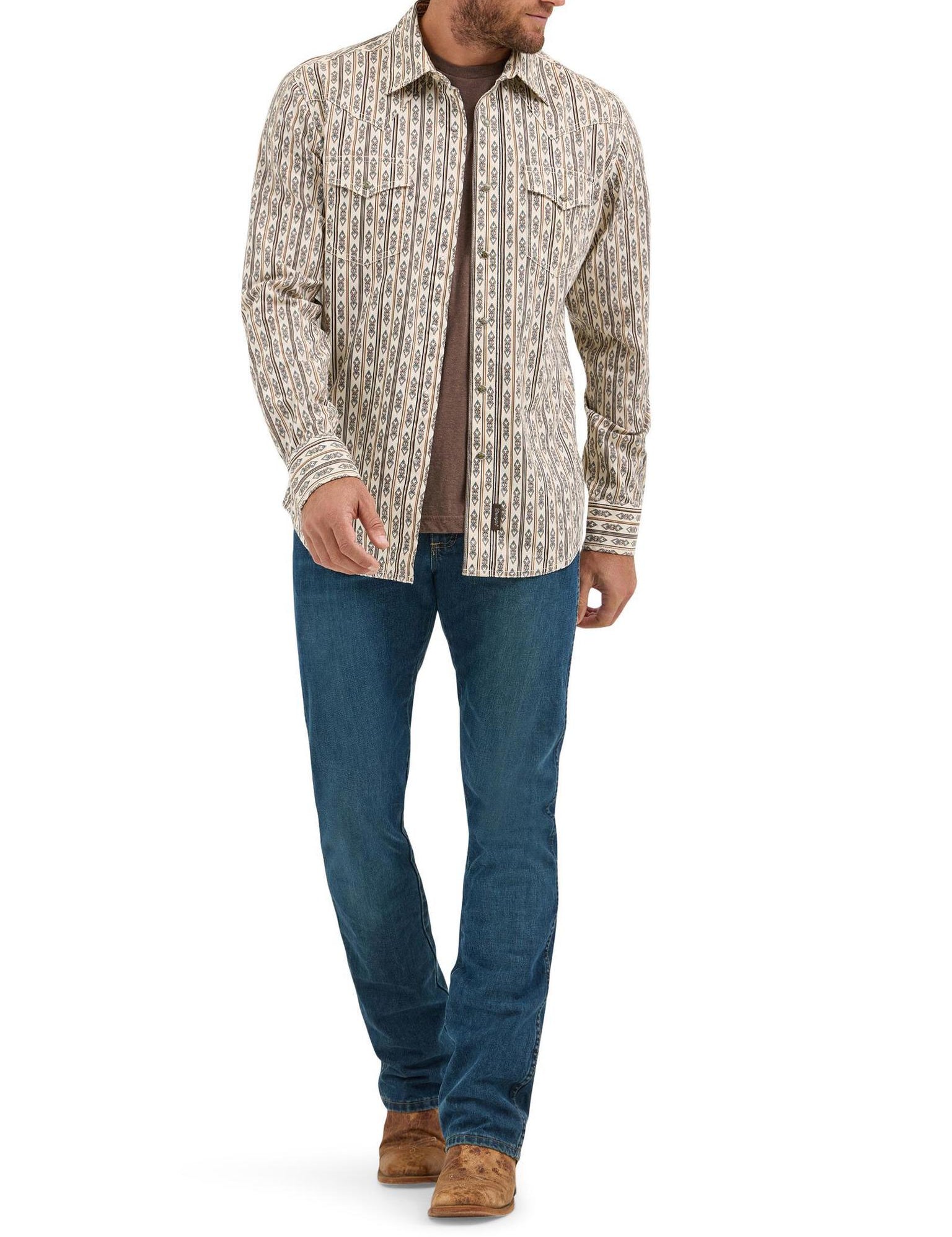 Wrangler Men's Retro Long Sleeve Shirt Modern Fit Antique White Multi