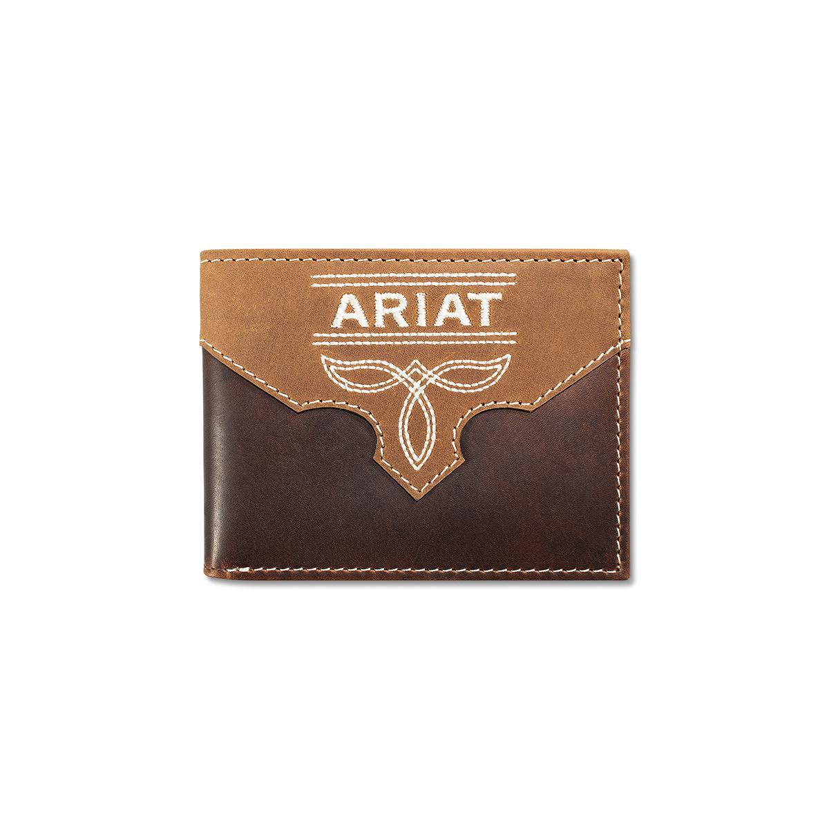 Ariat Bifold Pass Case Wallet Boot Stitch Overlay Brown