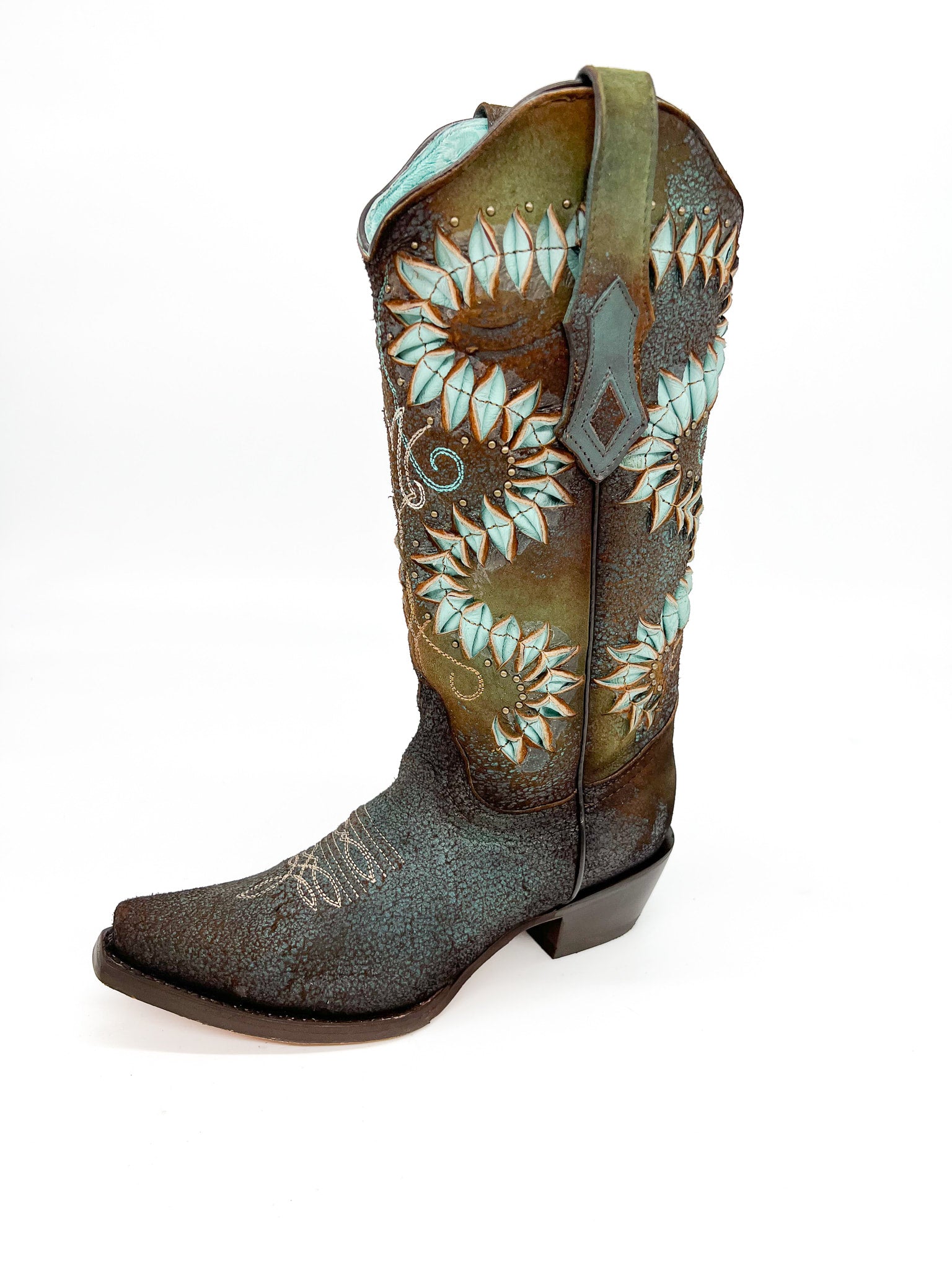 Corral Women's BROWN/BLUE LAMB INLAY & EMBROIDERY & STUDS