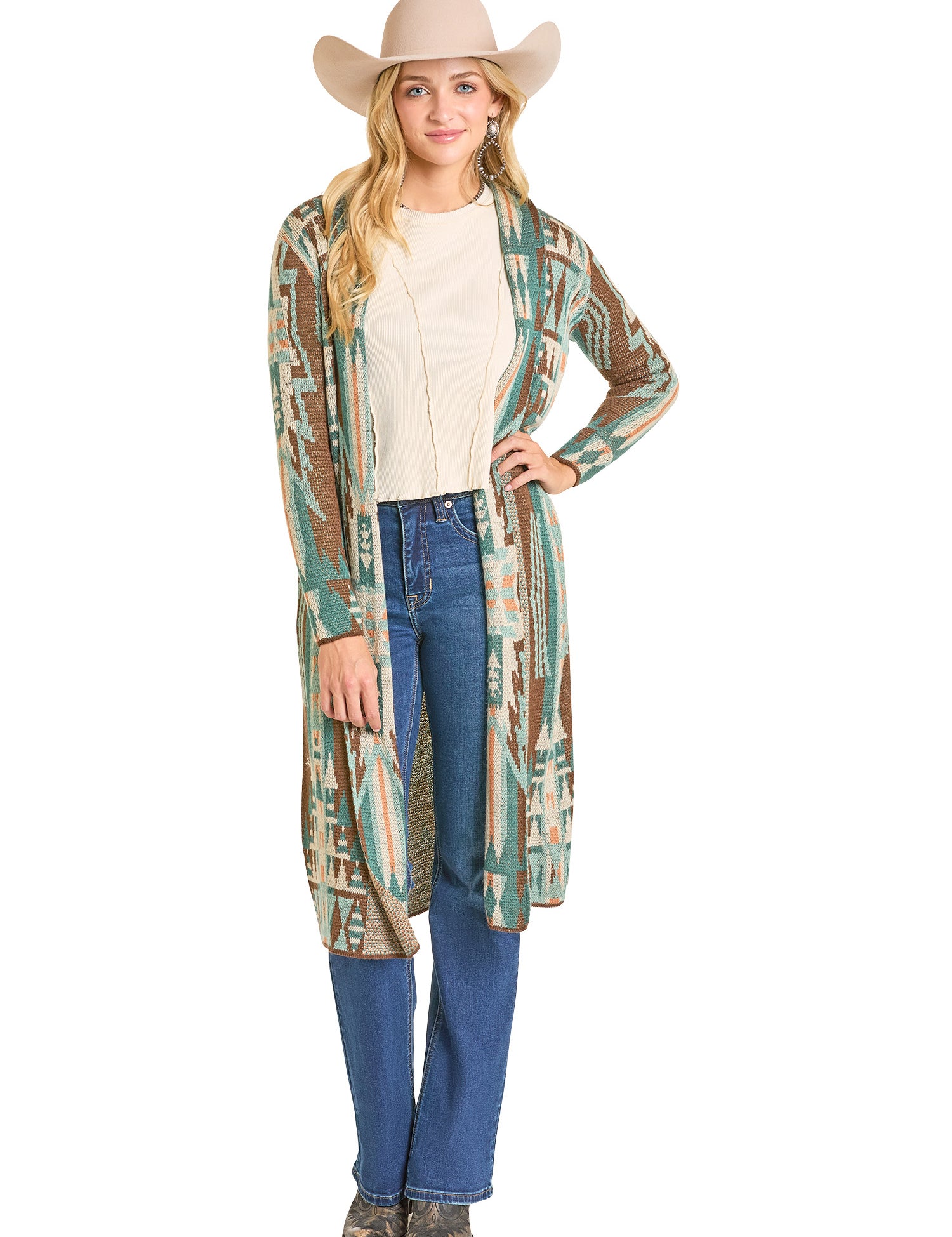 Rock & Roll Denim BW95T06954 Wms Aztec Knit Duster Natural