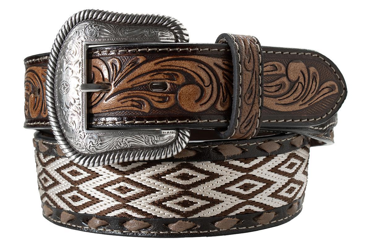 Nocona Men's Belt 1 1/2" Diamond Floral Embossed Brown