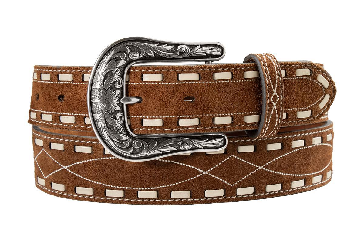 Nocona Women's Belt 1 1/2 Roughout Boot Stitch Step Lacing Rust