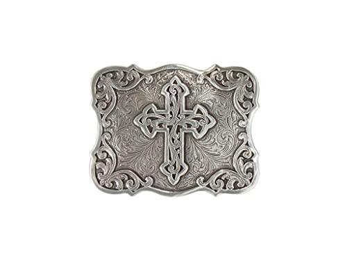 Blazin Roxx Western Belt Buckle Rectangle Cross Filigree Silver