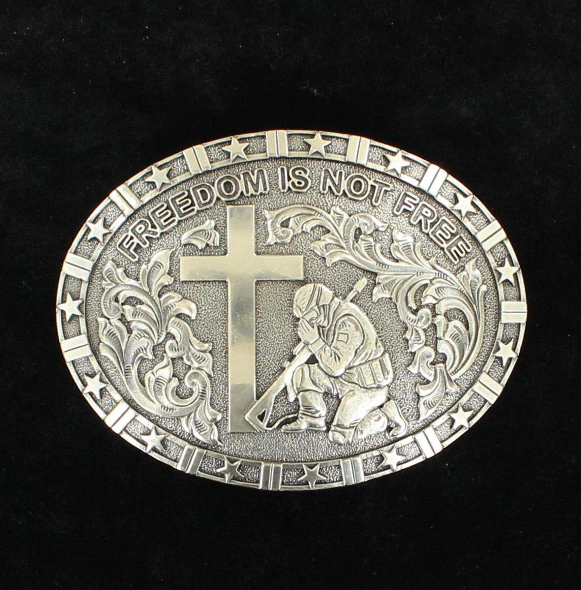 Nocona Oval Belt Buckle Military Prayer "Freedom Is Not Free"
