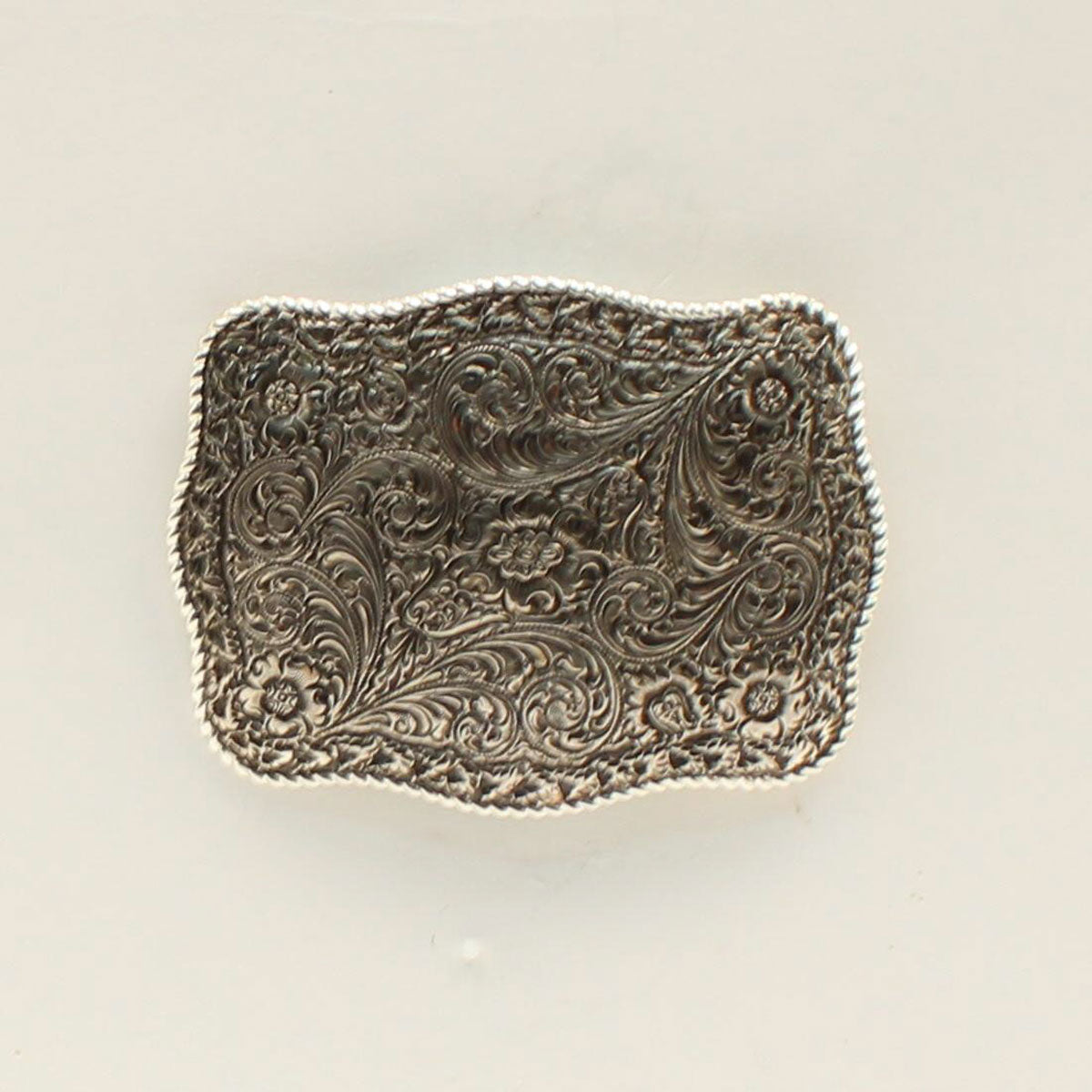 Crumrine Retangle Belt Buckle Rope Edge Floral Scroll