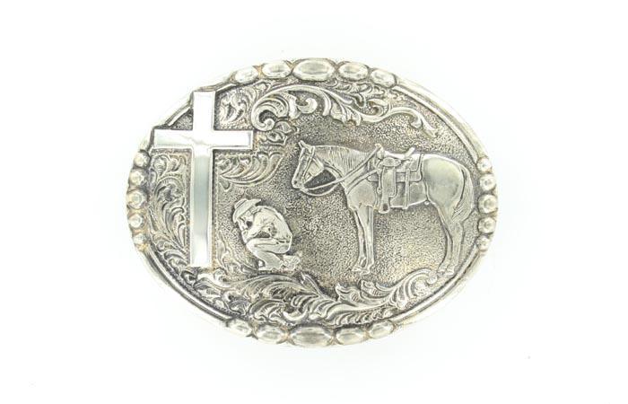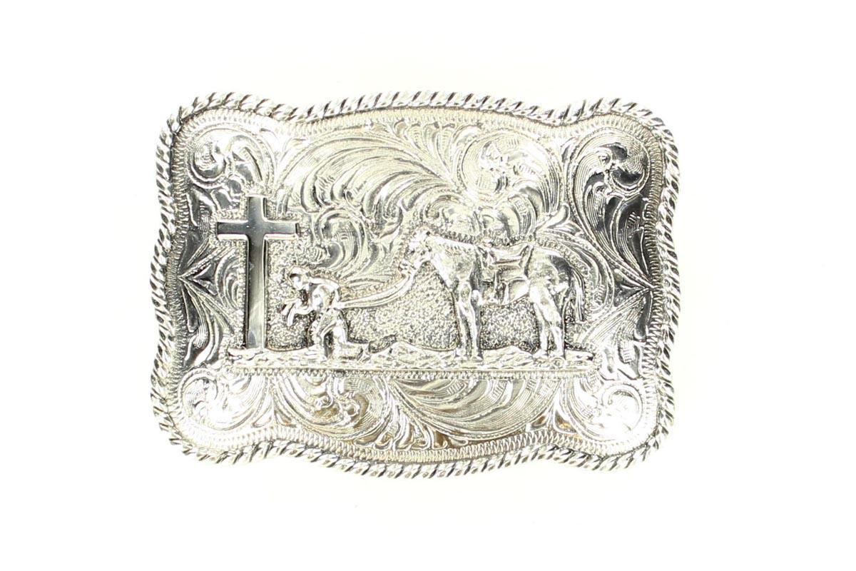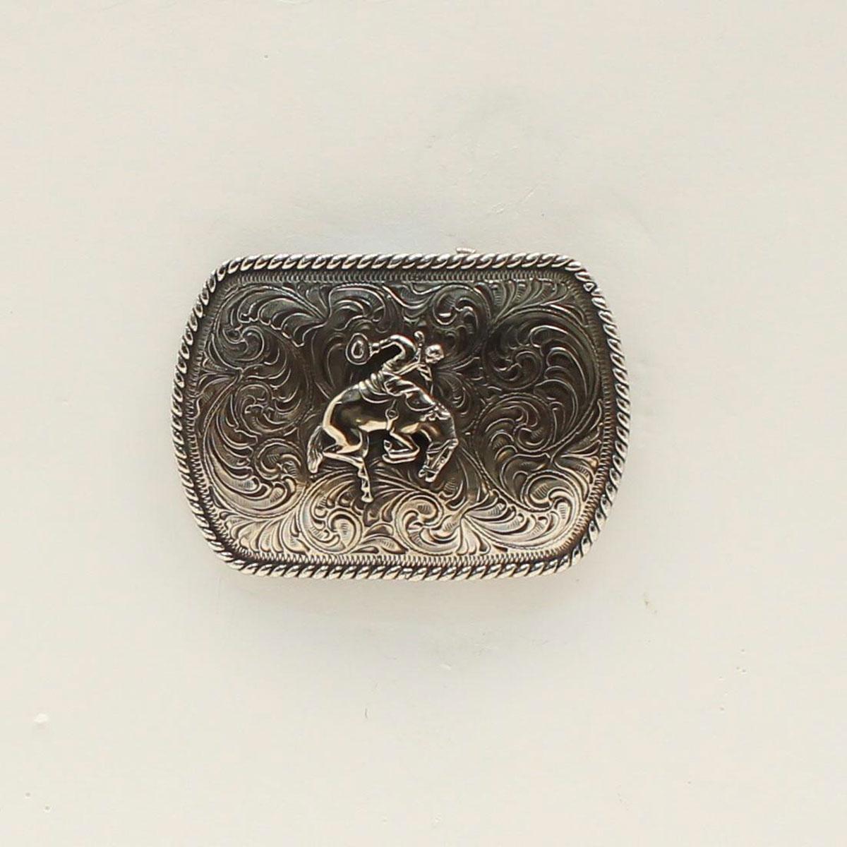 Crumrine Rectangle Bronc Rope Edge Antique Silver Belt Buckle