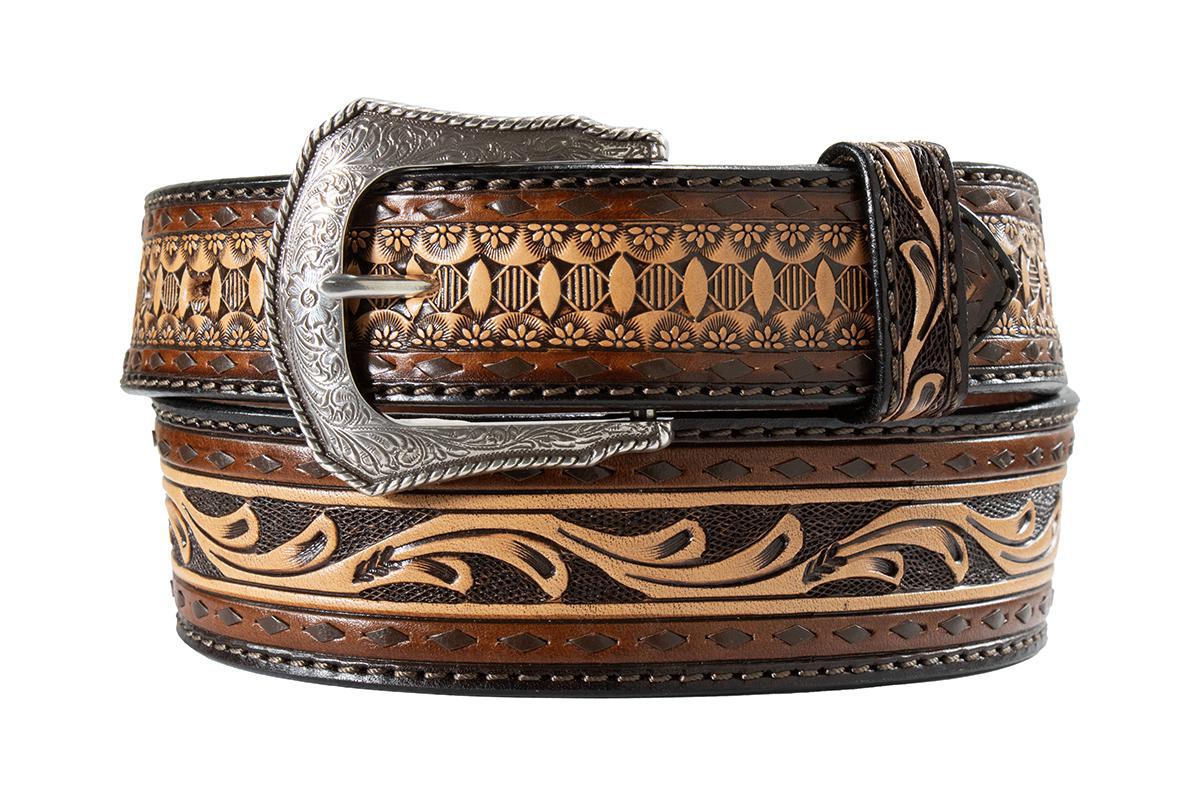 3D Men's Belt 1 3/4-1 1/2 Hand Tooled Scrolling Brown