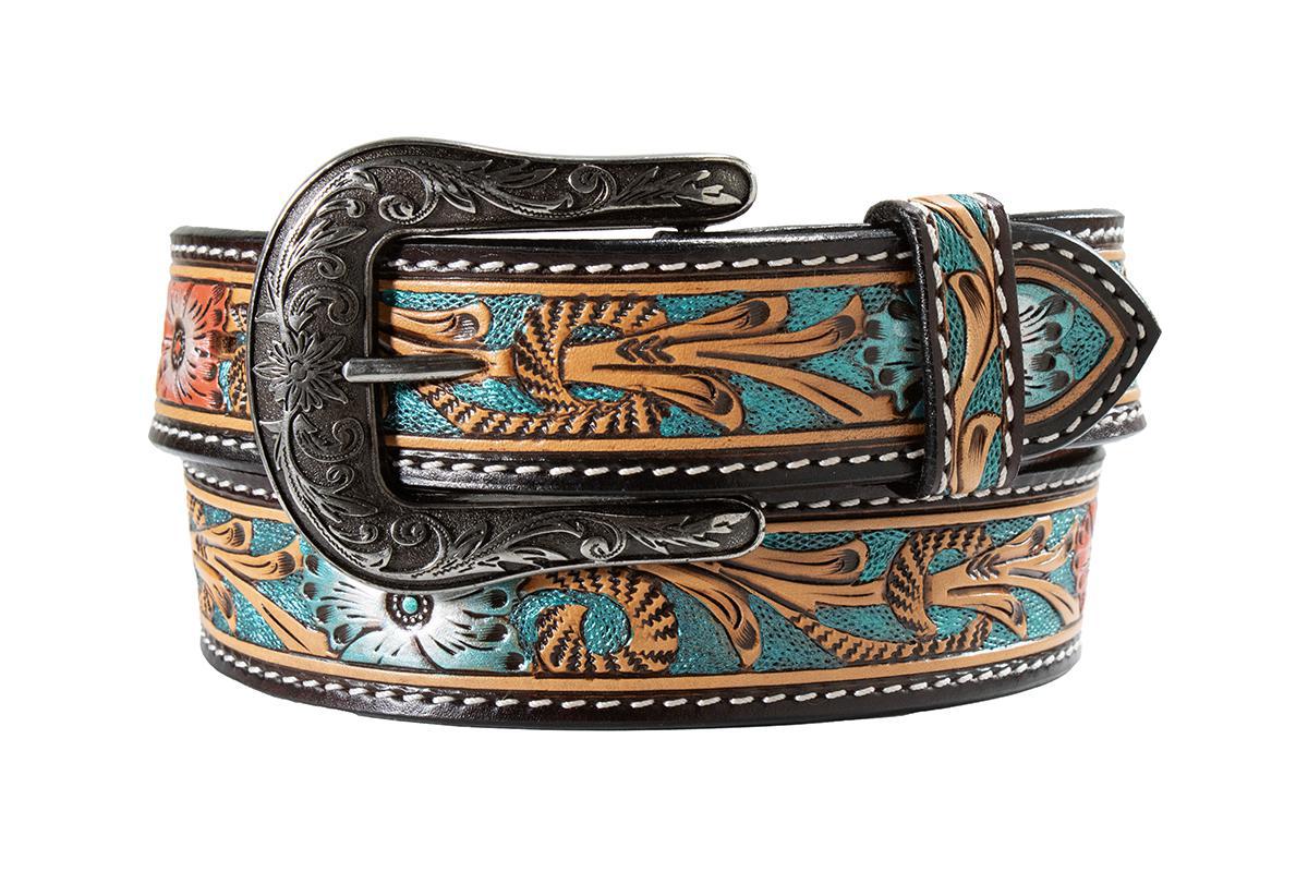 Angel Ranch Women's Belt 1 1/2 Floral Embossed Brown