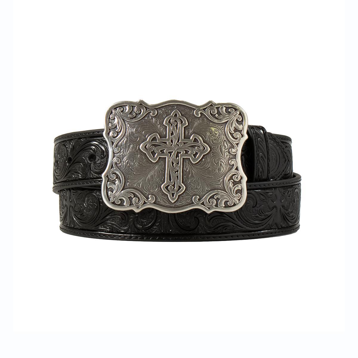 Nocona Women's Belt 1 1/2" Embossed Cross Black