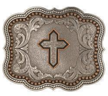 Nocona Rectangle Scalloped Copper Cross Belt Buckle