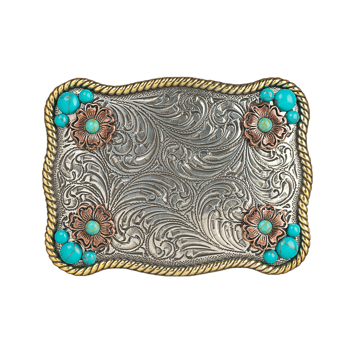 Nocona Rectangle Buckle Flower Accent Turquoise Stones