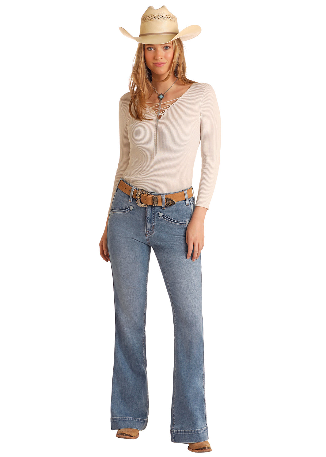 Rock & Roll Denim BW5HD06061 Wms Smiley Pocket HR Trouser Jean Medium Vintage Wash