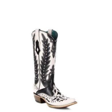 Corral Women's White/Black Embroidery & Overlay w/stud wing tip