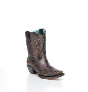 Corral Women's Black/Honey Floral Embroidery Ankle Boot Snip Toe