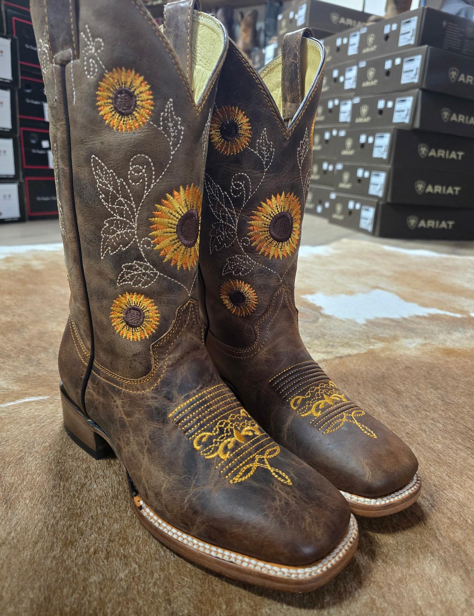 R. Watson Women's Full Quill Ostrich Kango Tobac/Chocolate Mestizo Narrow Square Toe