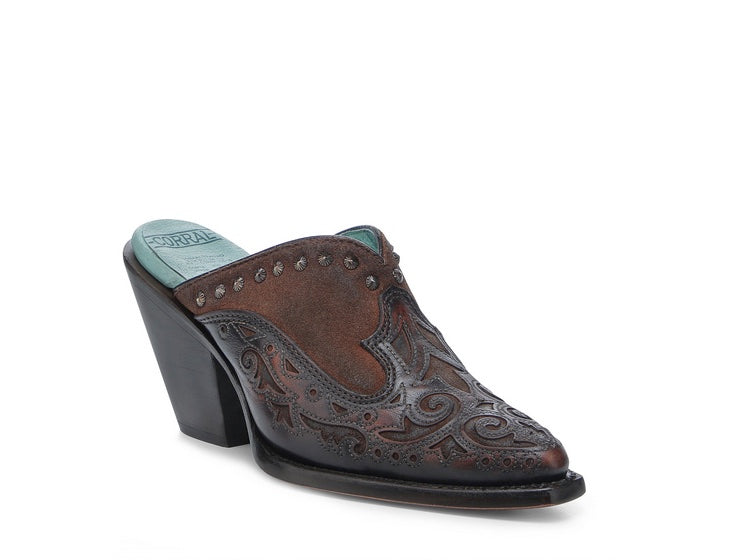 Corral Women's Brow/Chocolate Inlay & Embroidery w/studs Mule