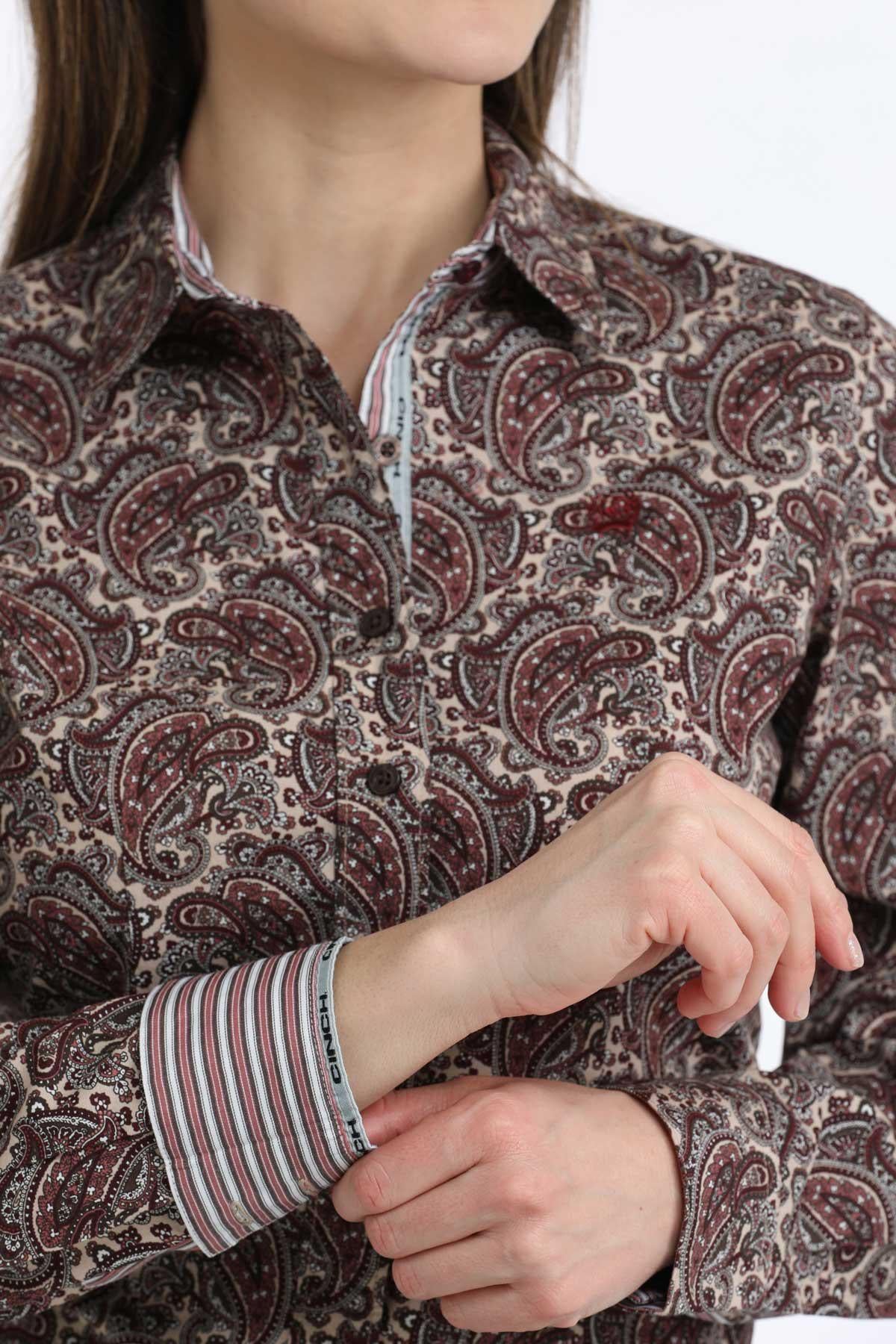 Cinch Women's Long Sleeve Paisley Print Multi Color