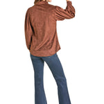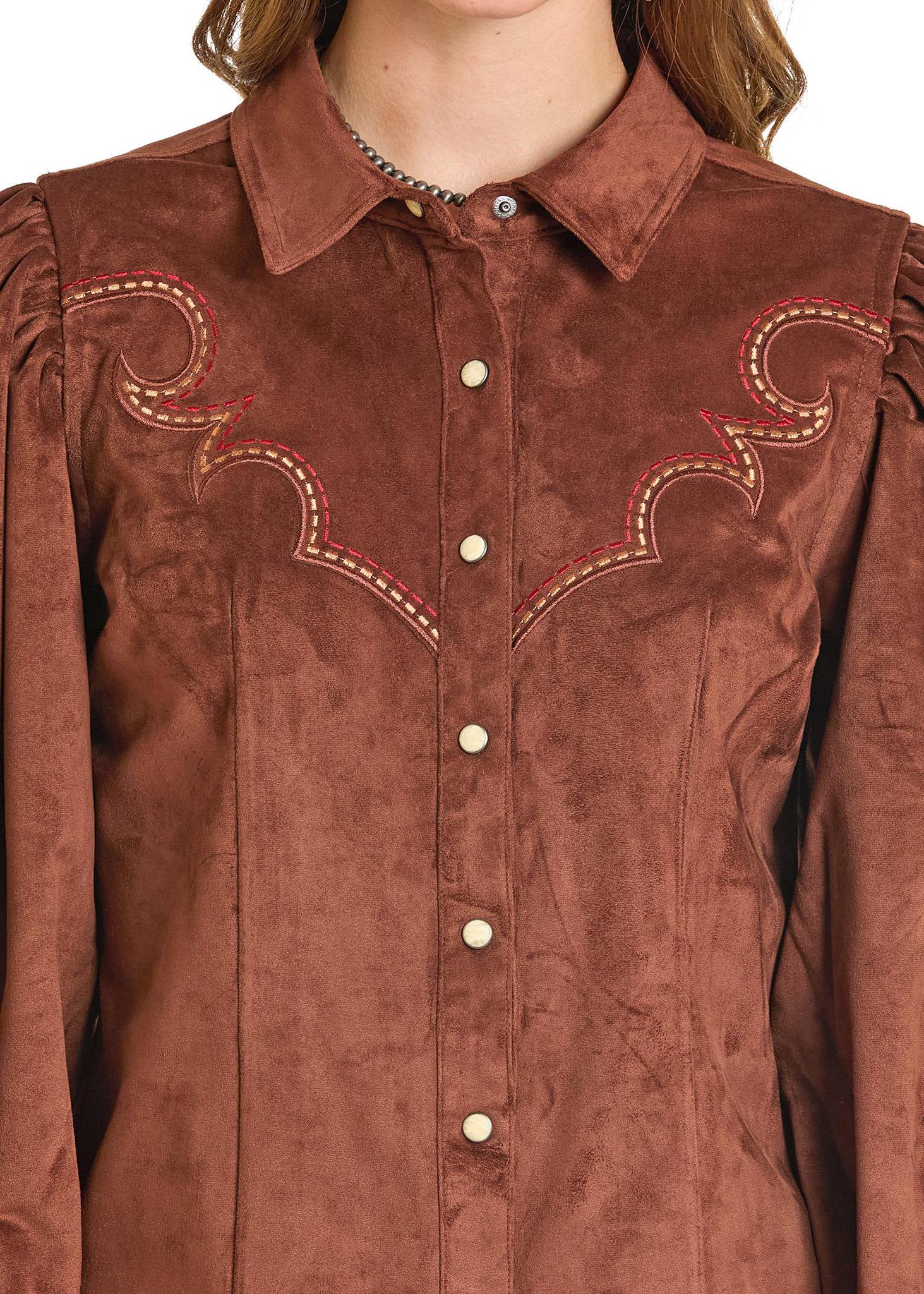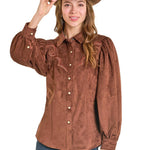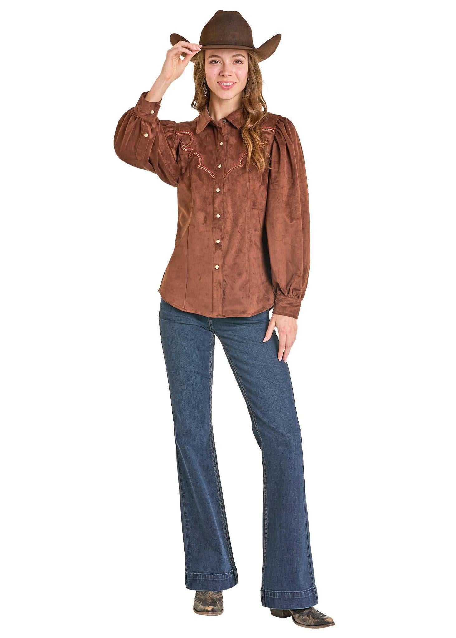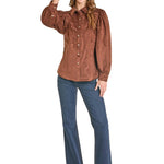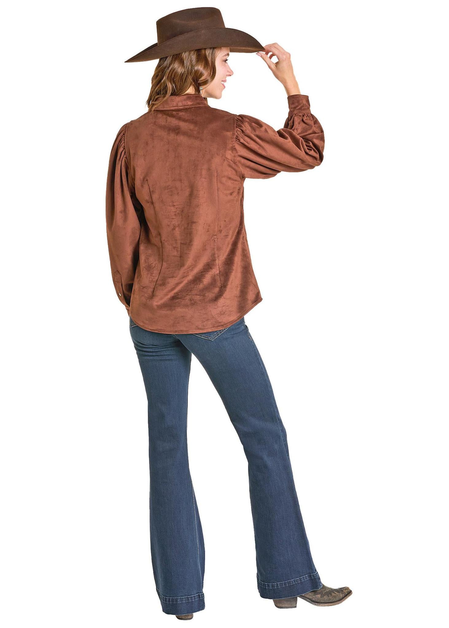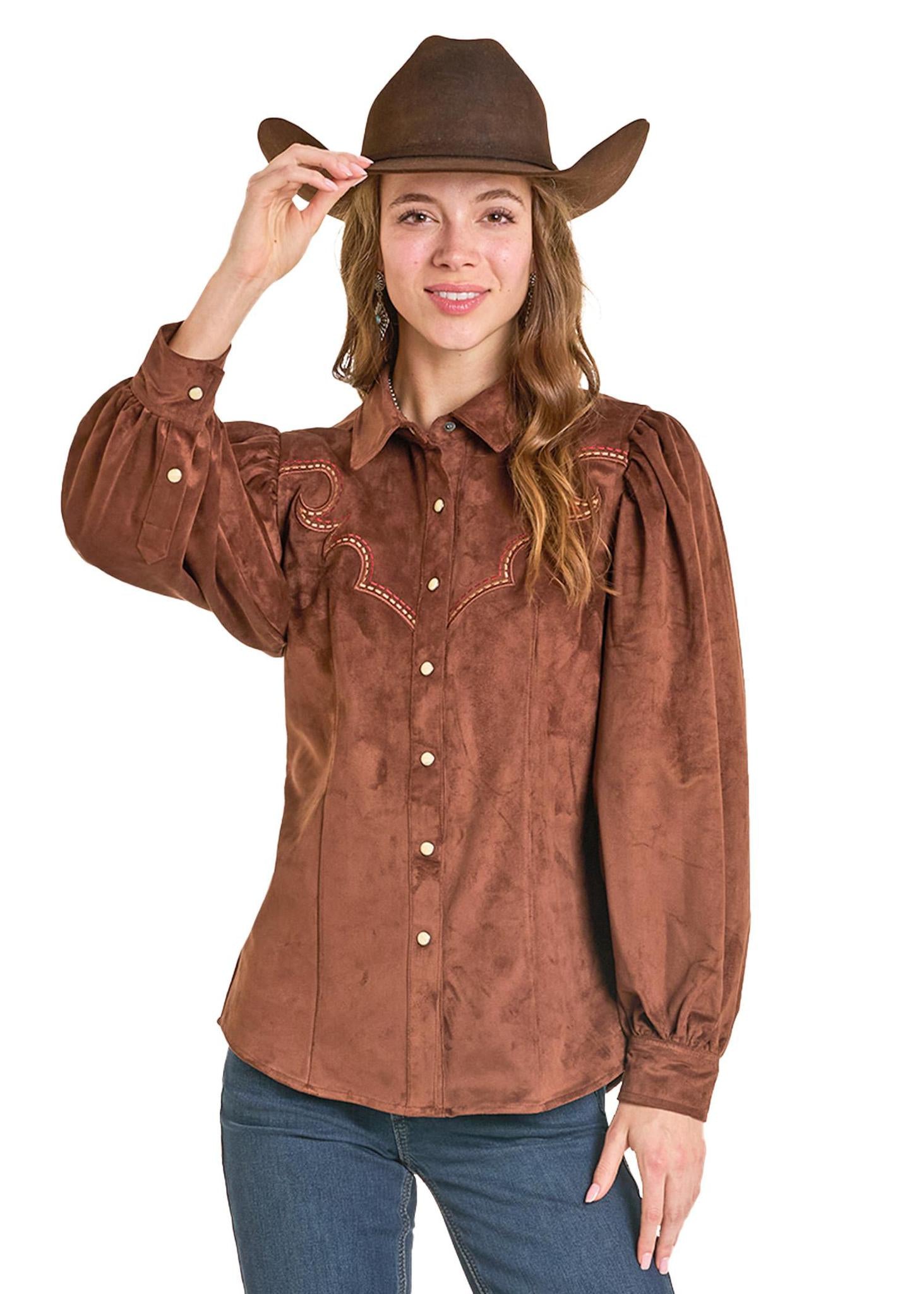 Rock & Roll Denim LWN2S07067 Wms LS Embroidered Puff Sleeve Top Chocolate