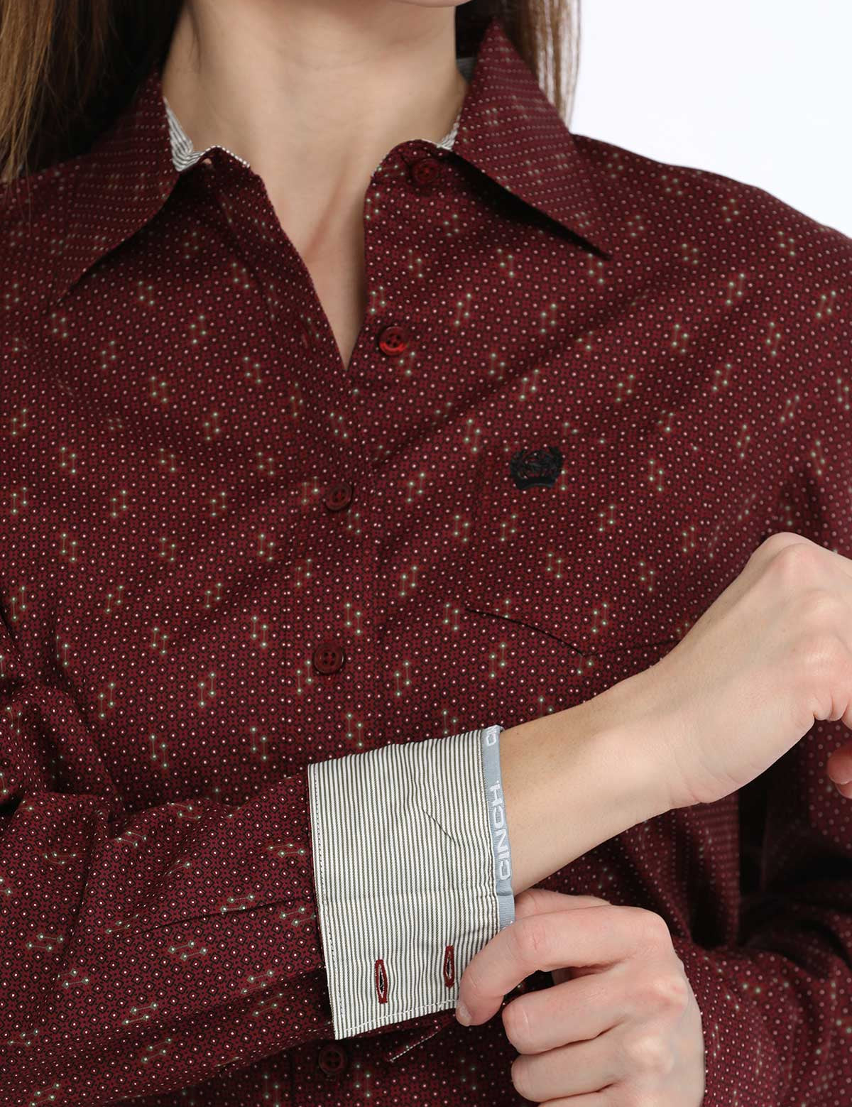 Cinch Wms Long Sleeve Print Burgundy 12/24
