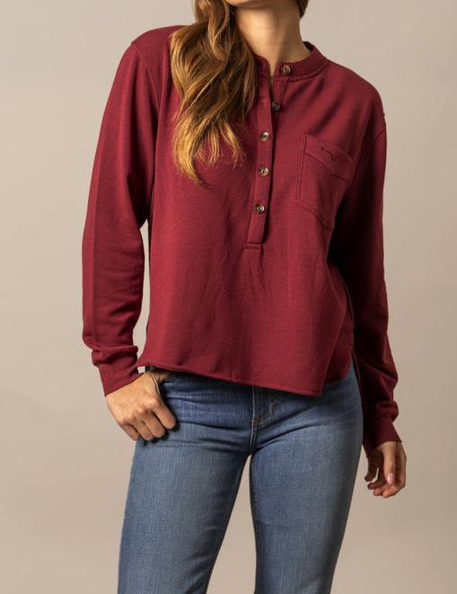 Kimes Ranch Women's Elouise Henley Long Sleeve Shirt Maroon