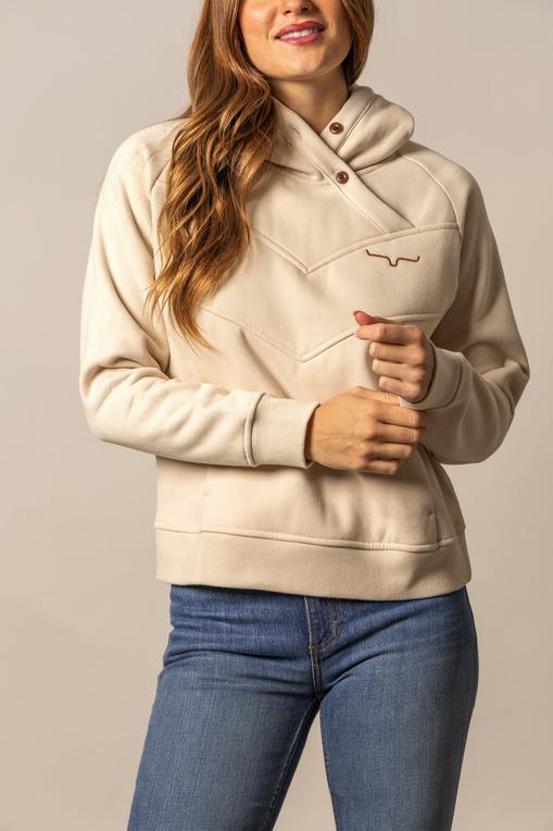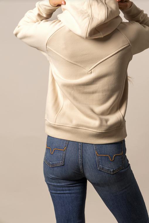 Elevate your western style with the Ella. Crafted with attention to detail, this pullover features unique double stitching and classic western seams for an on-brand look. The criss-cross button cowl neckline adds a touch of style, while the embroidered rope stitch longhorn logo at the back yoke makes a bold statement. A subtle longhorn logo at the front completes this must-have piece for any cowgirl. Cozy and comfortable, this hoodie is perfect for layering or wearing on its own.