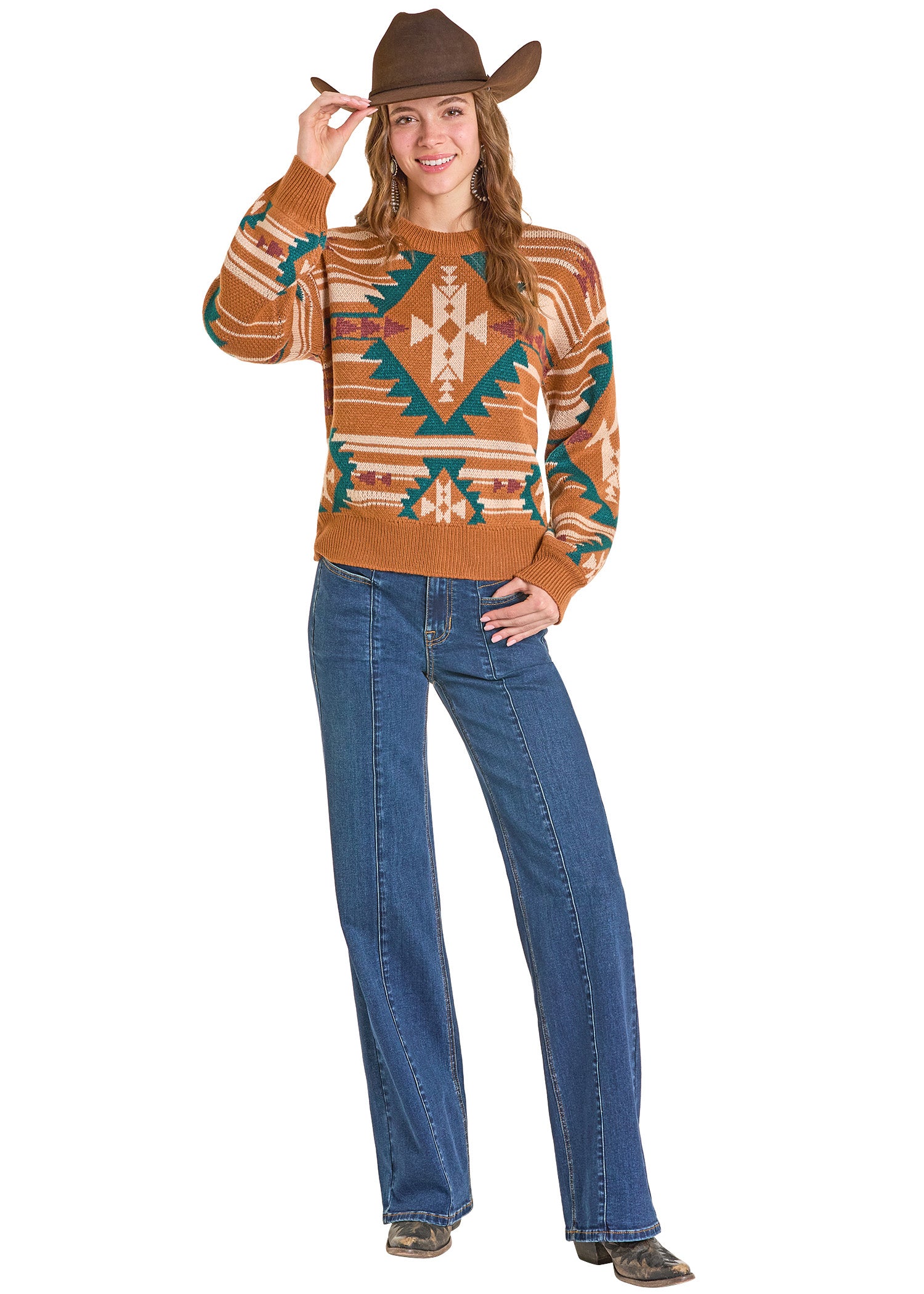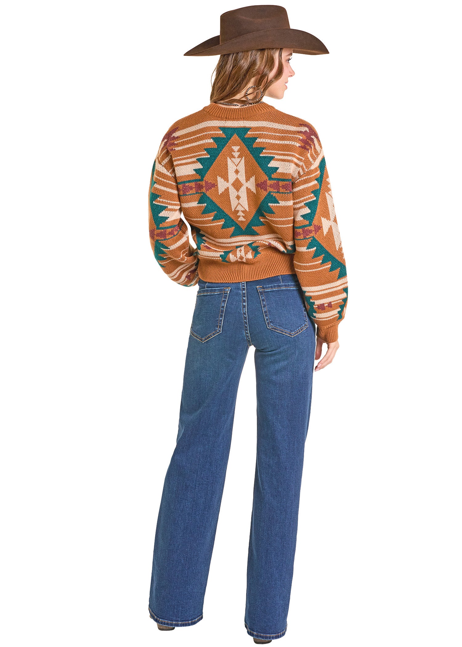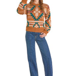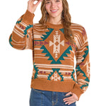 Rock & Roll Women's Aztec Knit Sweater Camel