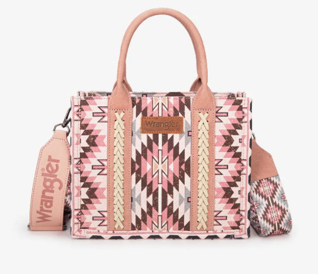 Wrangler Aztec Print Whipstitch Canvas Tote Bag Dark Pink