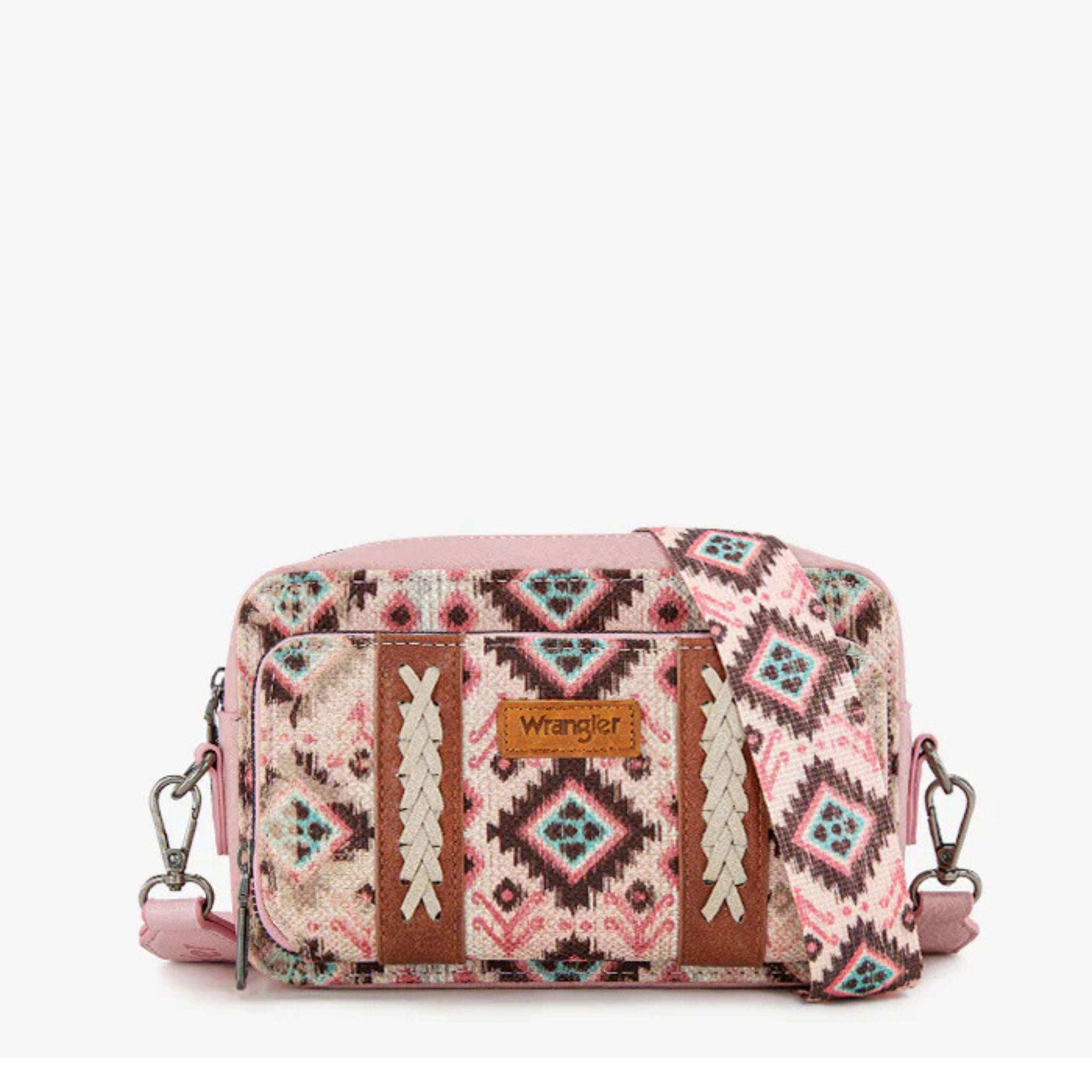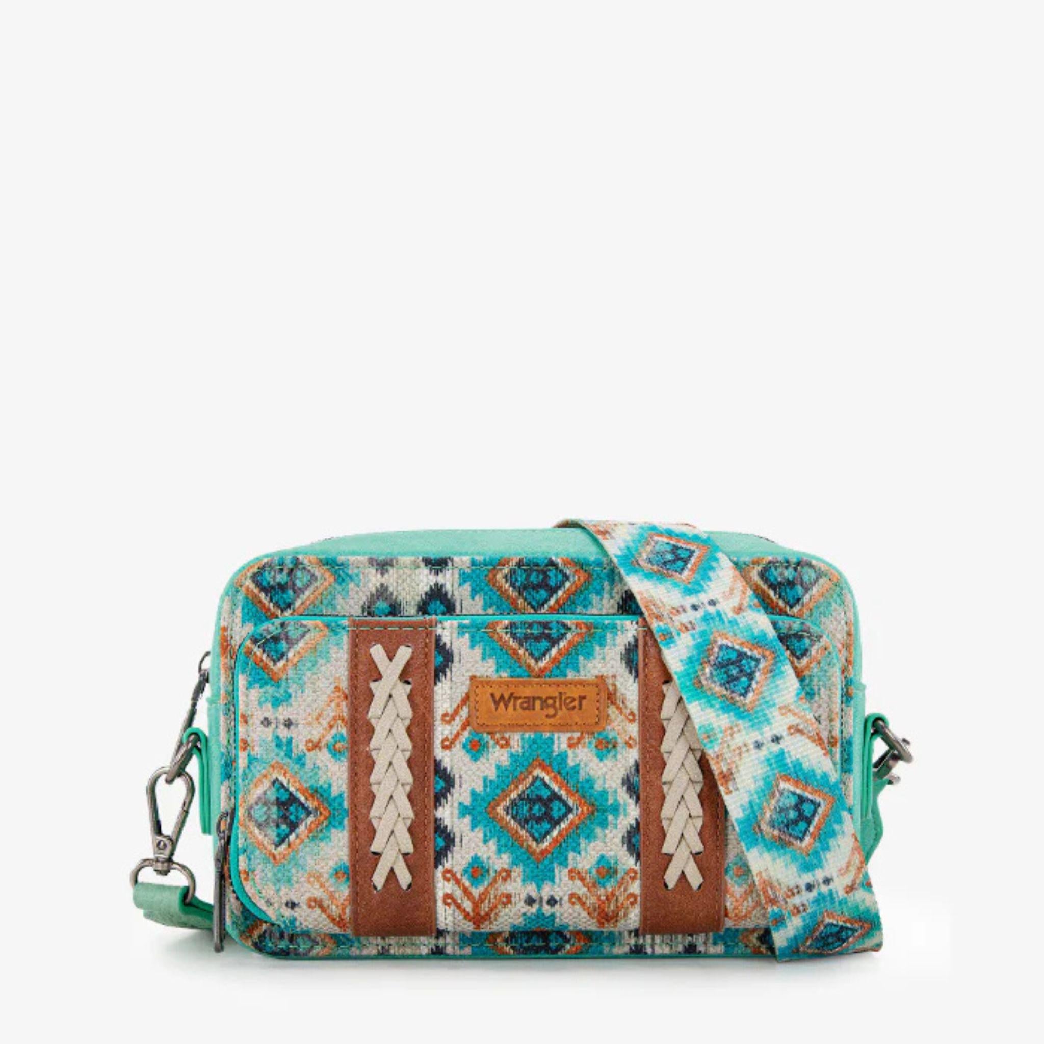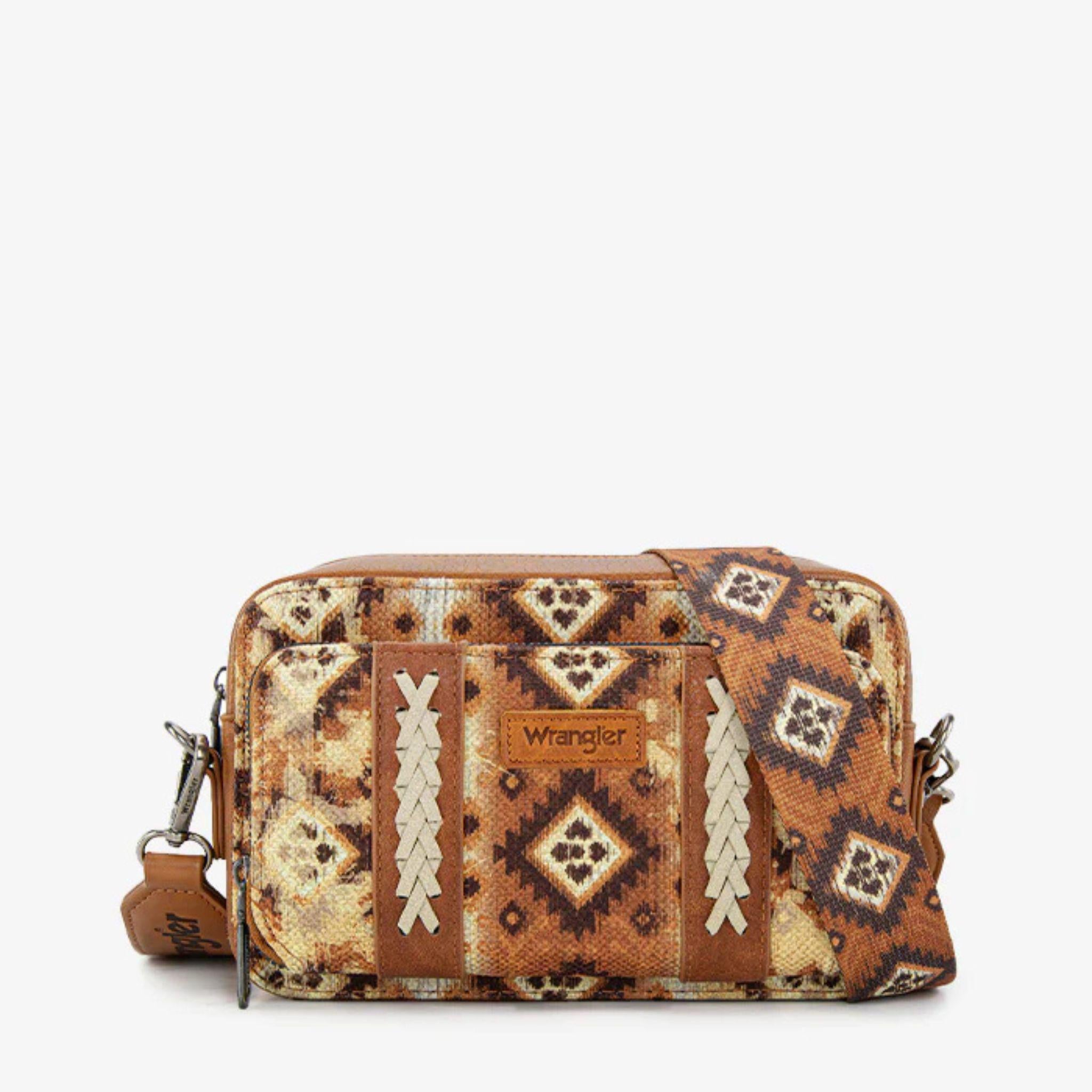 Wrangler Southwest Pattern Dual Sided Print Crossbody Purse w/Wallet Compartment