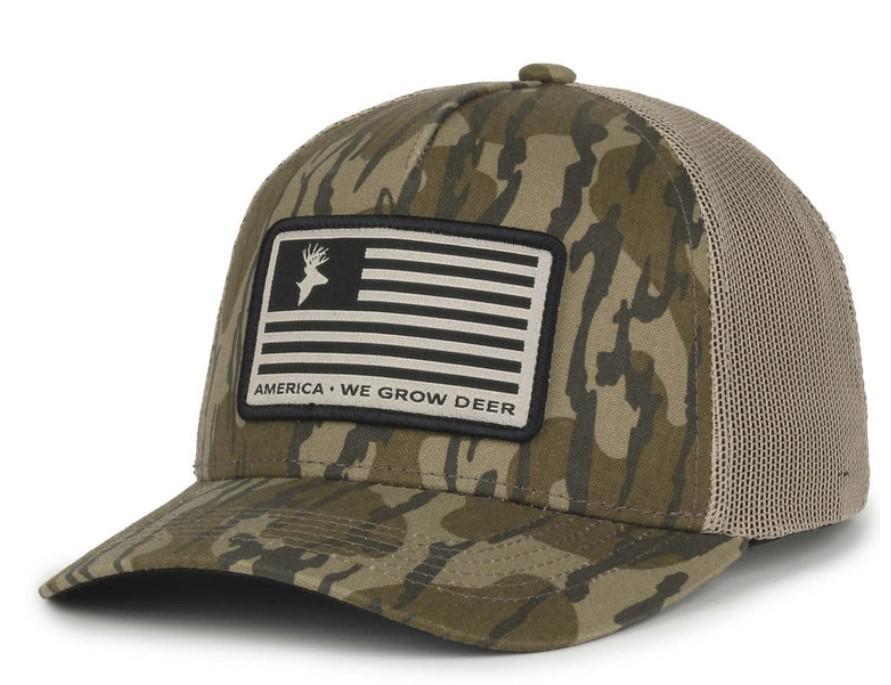 American Cattle Co We Grow Deer Flag Hat Bottomland Camo