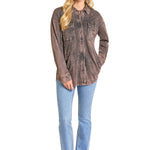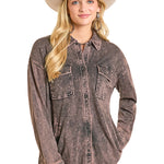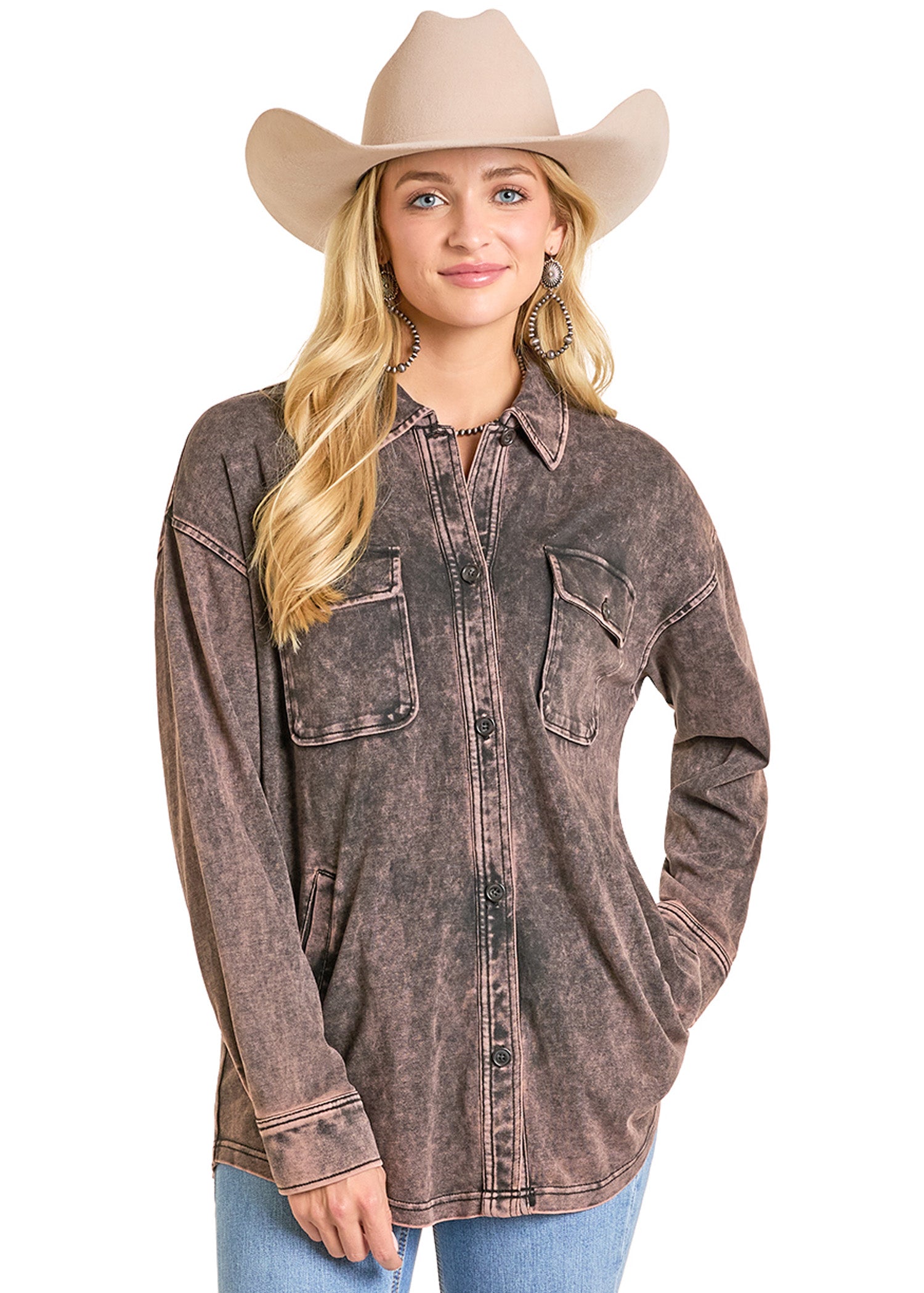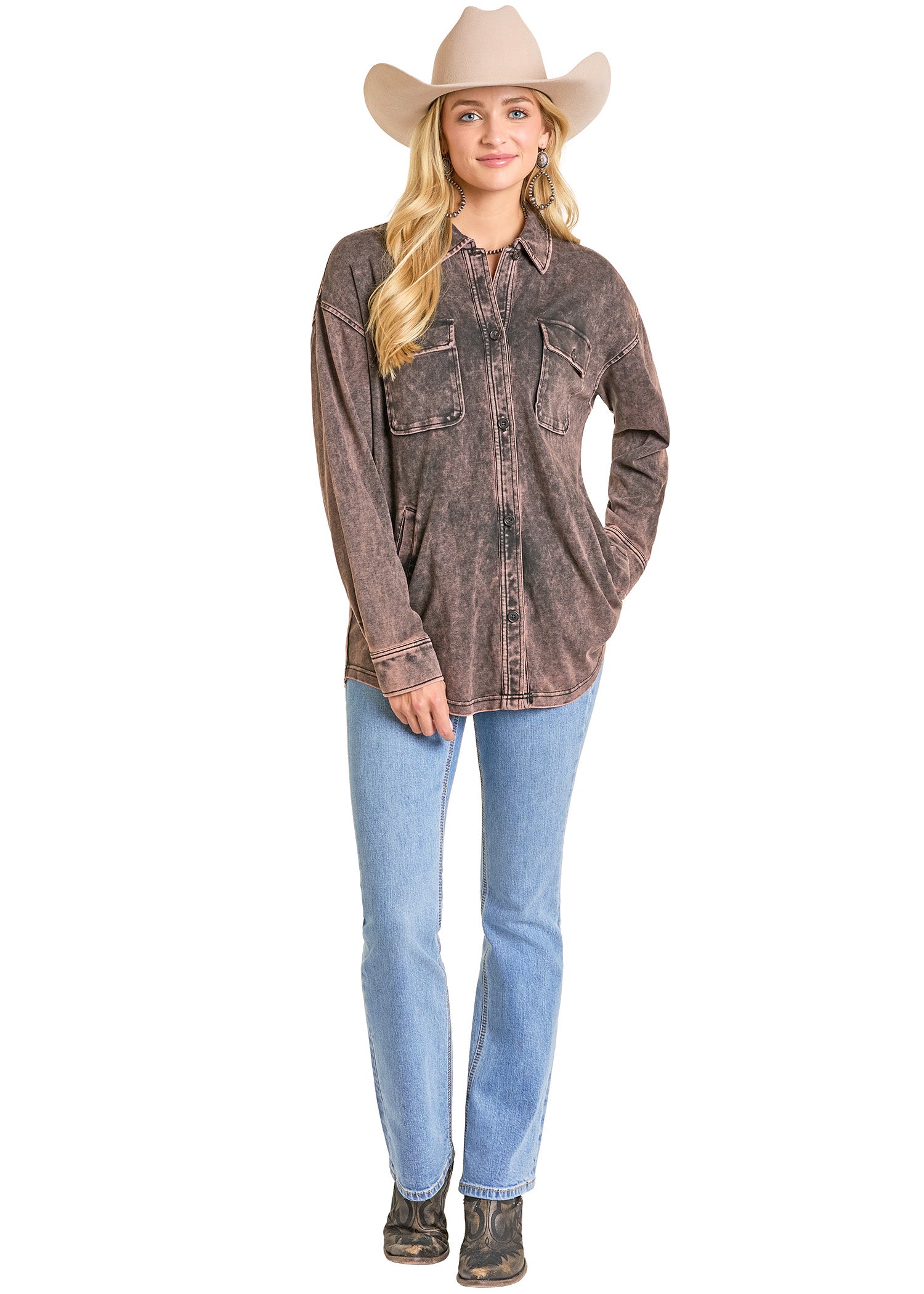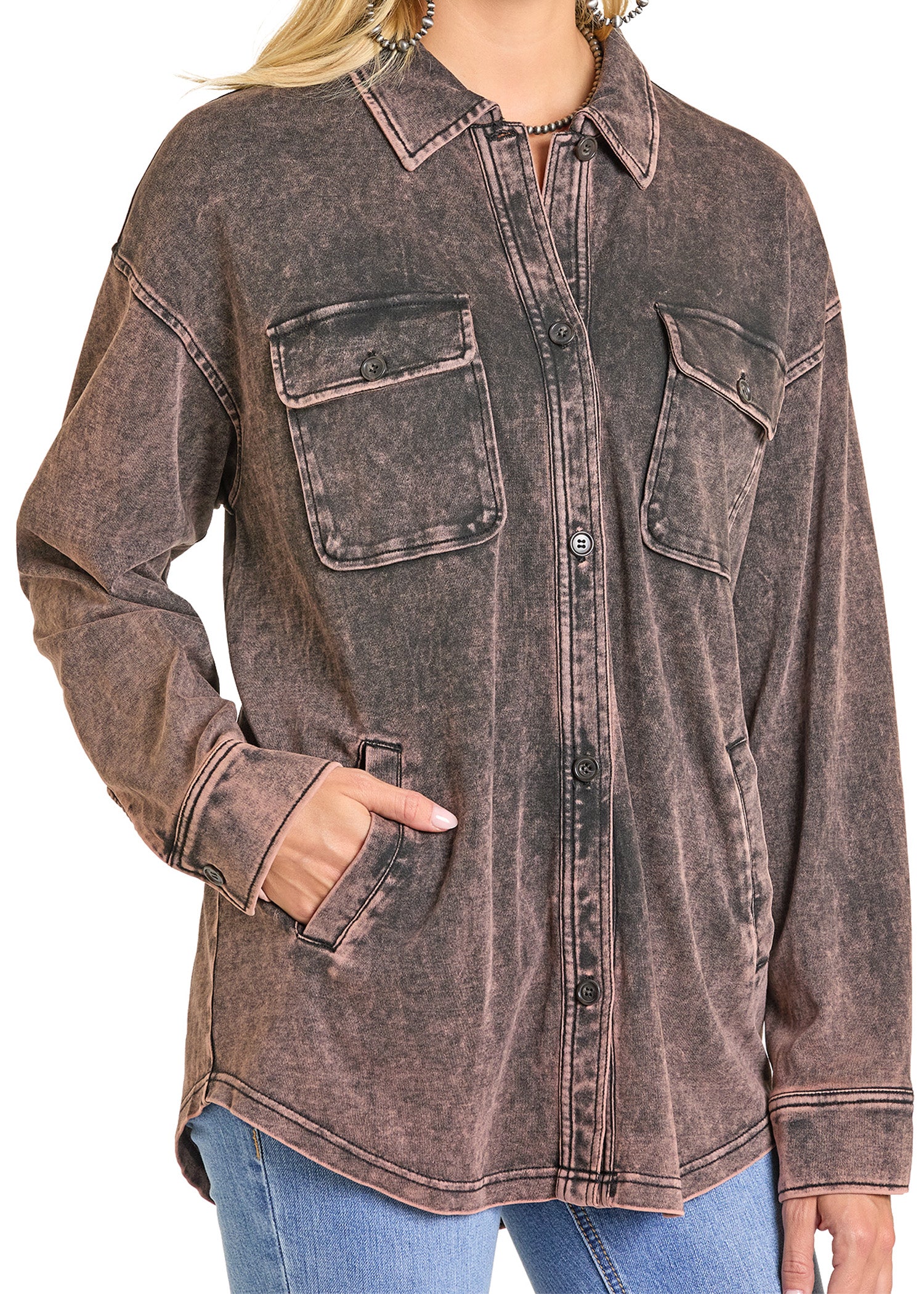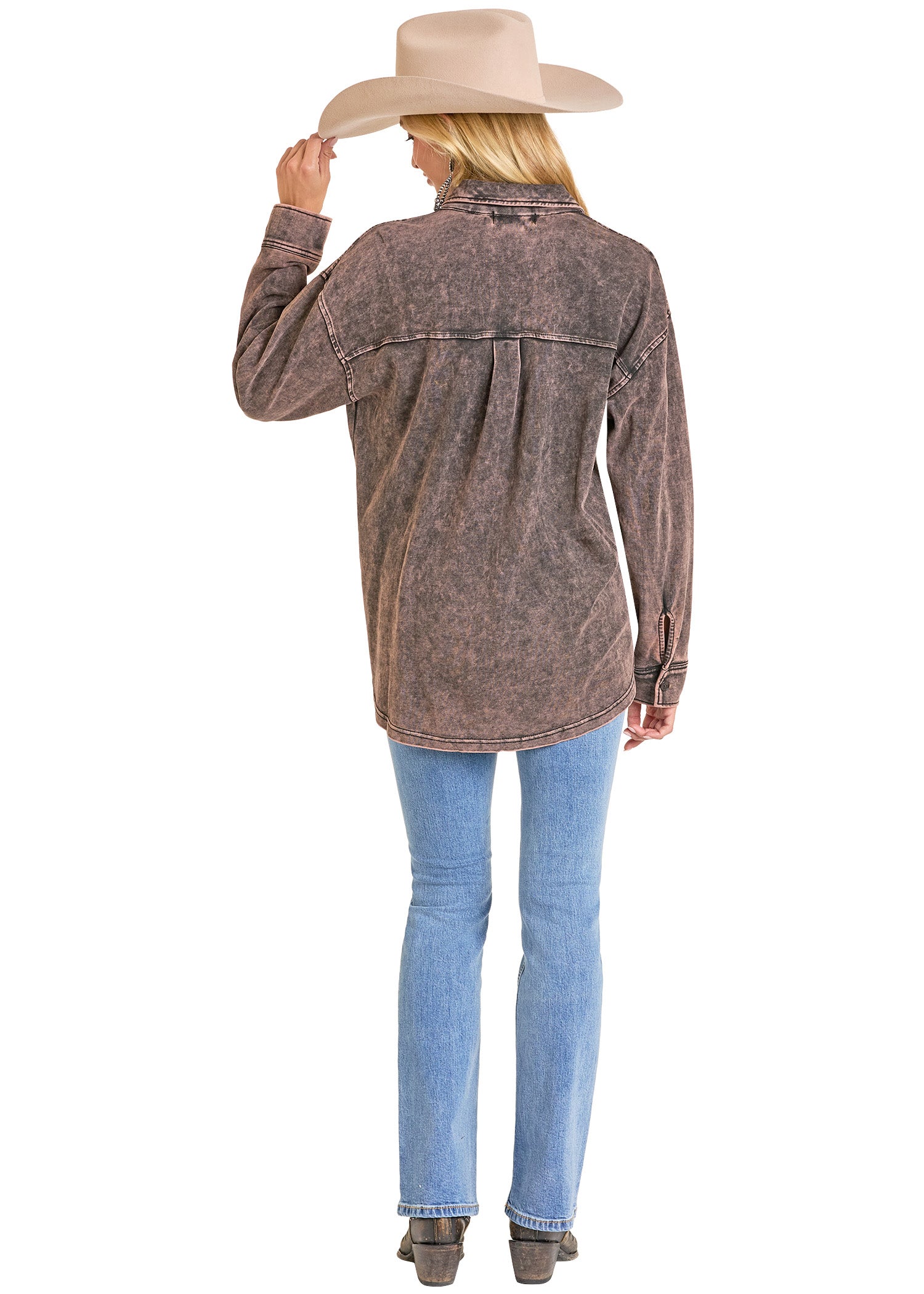 Rock & Roll Women's Knit Shacket w/Wash Brown